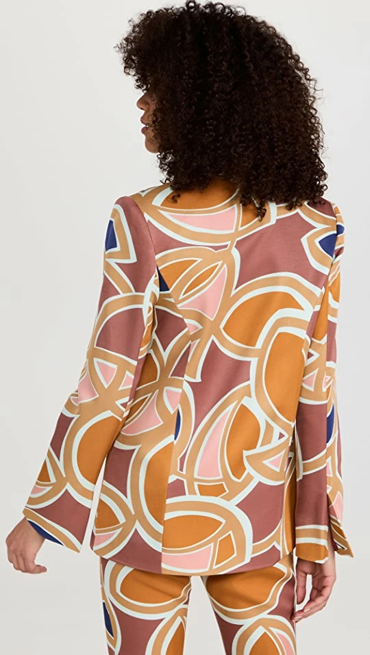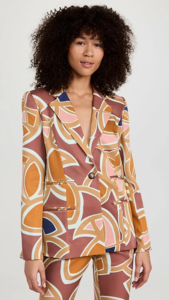 - Notched lapels and single-breasted button placket