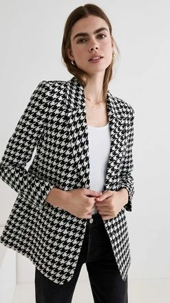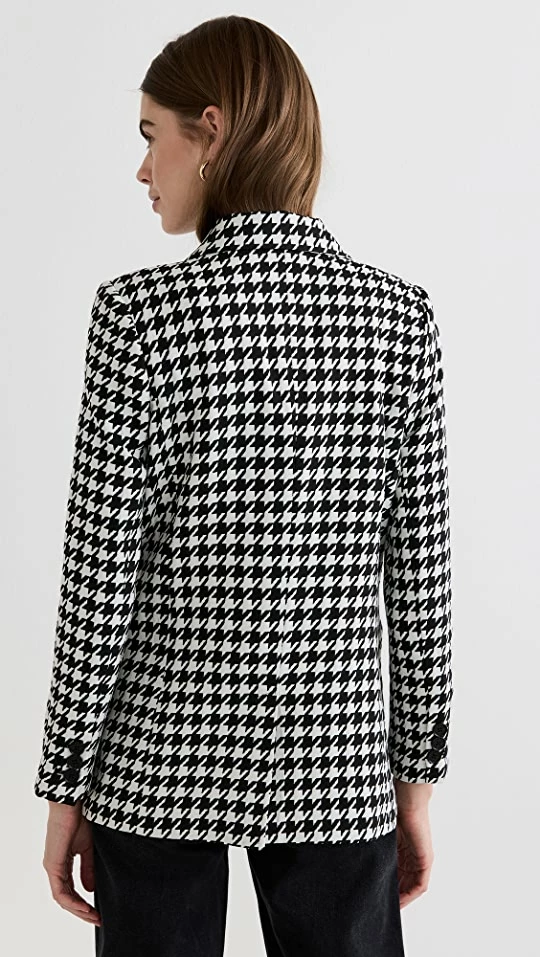 - Double-breasted silhouette and button placket