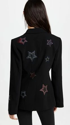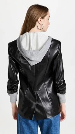 - Notched lapels and single-button placket