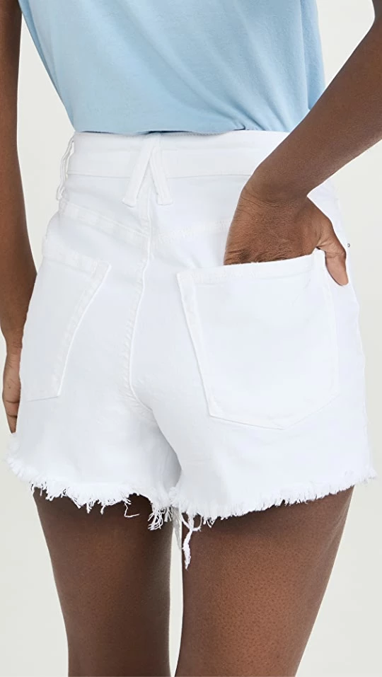 Bright-white denim composes these high-rise Good American shorts, which are finished with fraying at the hem.