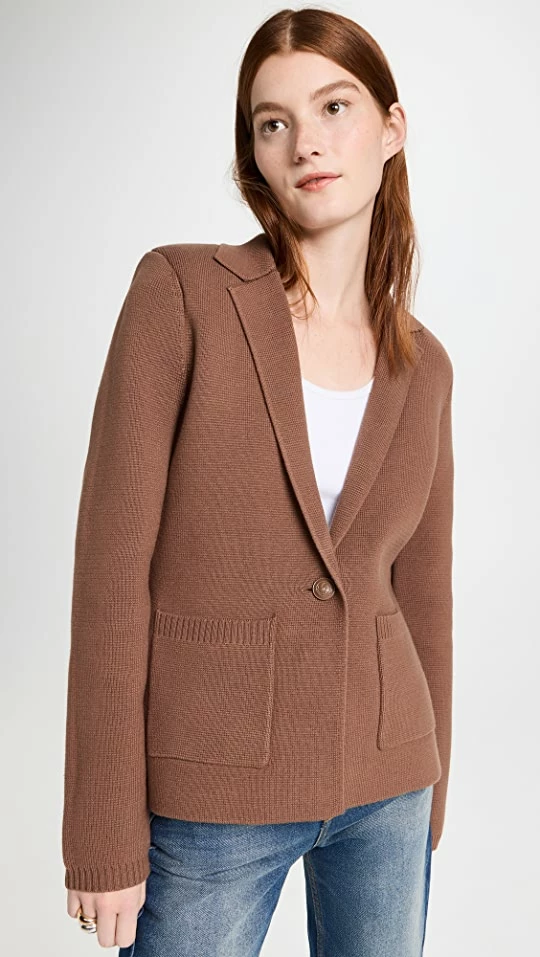 - Single-breasted silhouette and button placket