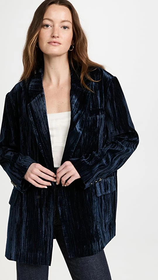 A polished layer with a romantic twist. This o.p.t. Kenny blazer is crafted from streaked and shimmery midnight-blue velvet, and is cut for a fit that’s relaxed but not too oversized. It’s a versatile layering option as well, working with everything from jeans to trousers.