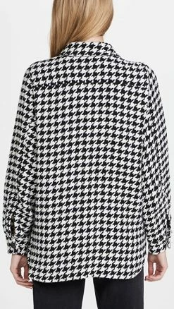- Double-breasted silhouette and button placket