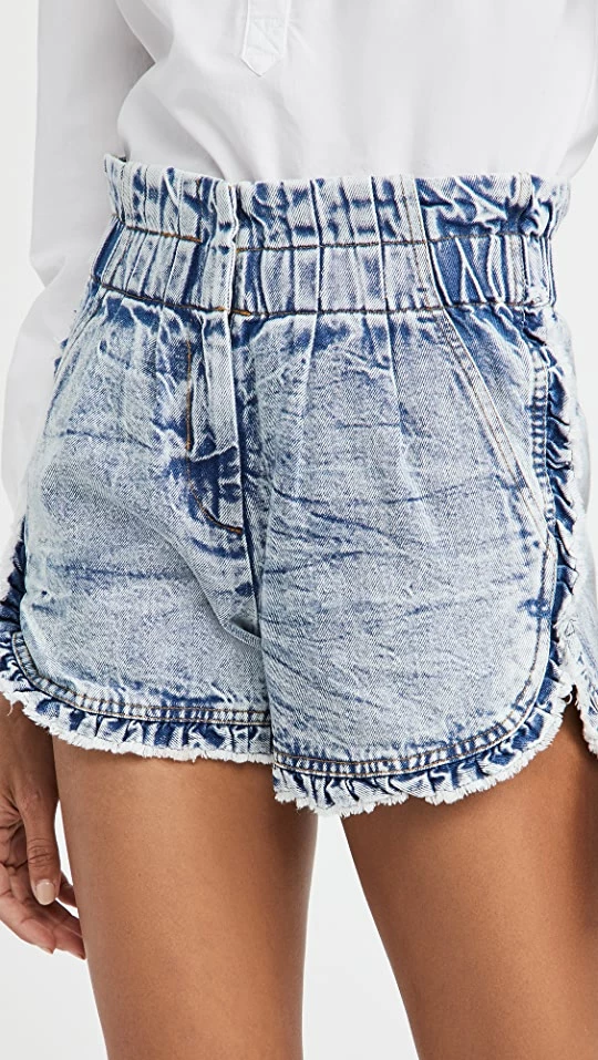An eye-catching pair of Sea cutoffs, featuring heavy acid washing and frayed, subtly ruffly edges. Tuck in a favorite tee or one of the label’s crisp blouses to round out your look.