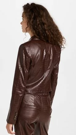 - Notched lapels and single-button placket